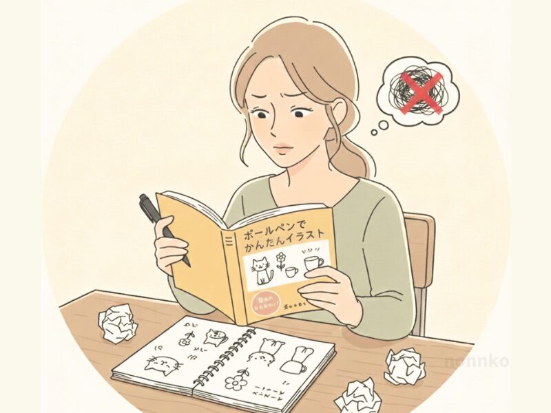 「可愛いイラストで日記を書けたらいいのにな…」そう思ってイラストの練習本を買ってチャレンジしましたが…