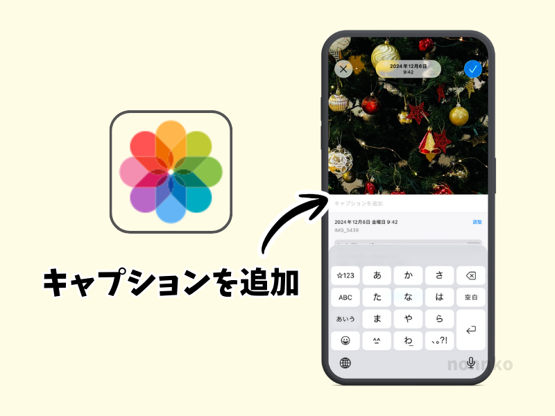 そんなことを考えていたとき、iPhoneの写真アプリの「キャプションを追加」という機能が頭に浮かびました。