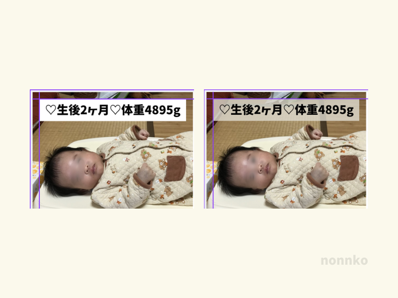 Canvaでコラージュ画像を作る際、写真アプリのキャプション欄にメモしておいた「その時の子どもの言葉」や「感じたこと」をそのままコピー&ペーストするだけです。