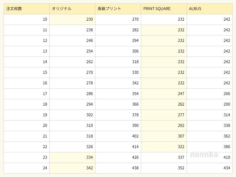 11〜22枚なら「PRINT SQUARE」がおトク