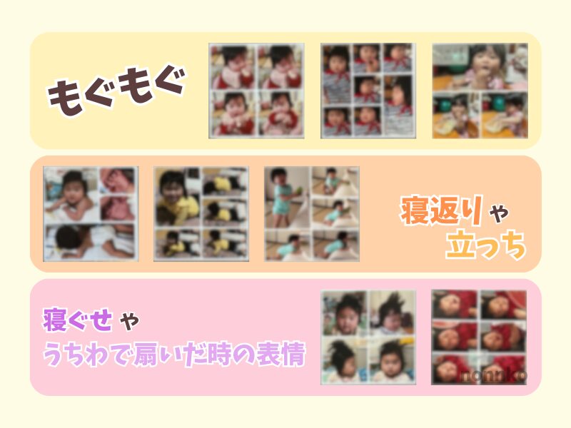 連写で撮ったほんの少し表情が違うだけの写真は、目線がちょっと違う、口の形が少し違うなど、どれも可愛くて「これは外せない」「これも残したい」と、選べなくなってしまいます。